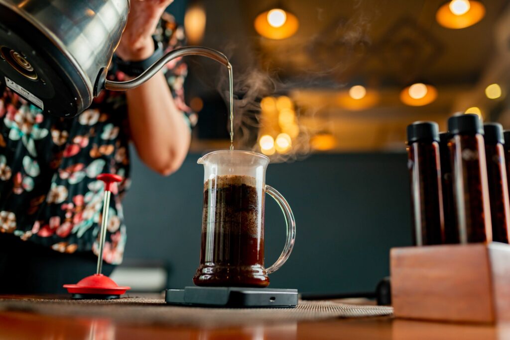 AeroPress is a versatile brewing equipment where both immersion and drip methods get involved. You leave your coffee submerged in hot water and thereafter apply pressure to filter it through a fine paper filter. You may get a quick espresso kind of shot with finer grinds and also brewed kind of coffee with coarser grind and longer brew times. You may use it up right or inverted, these make various combinations to play with versatility of this brewing equipment. Here we suggest a brewed coffee technique with upright method.